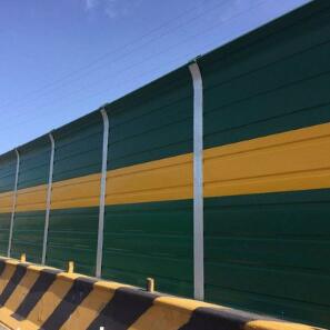 彩鋼聲屏障是一種高速開展的聲屏障資料。彩鋼隔音屏障主要由鋼柱和彩鋼屏蔽板組成。篩板內部主要由泡沫夾層作為吸聲資料,外部為兩層彩色鋼板??捎卸喾N顏色,藍色、白色等;常用彩色鋼板隔音屏障和鍍鋅鋼板隔音屏障互相分離,吸聲和隔音,效果更好!